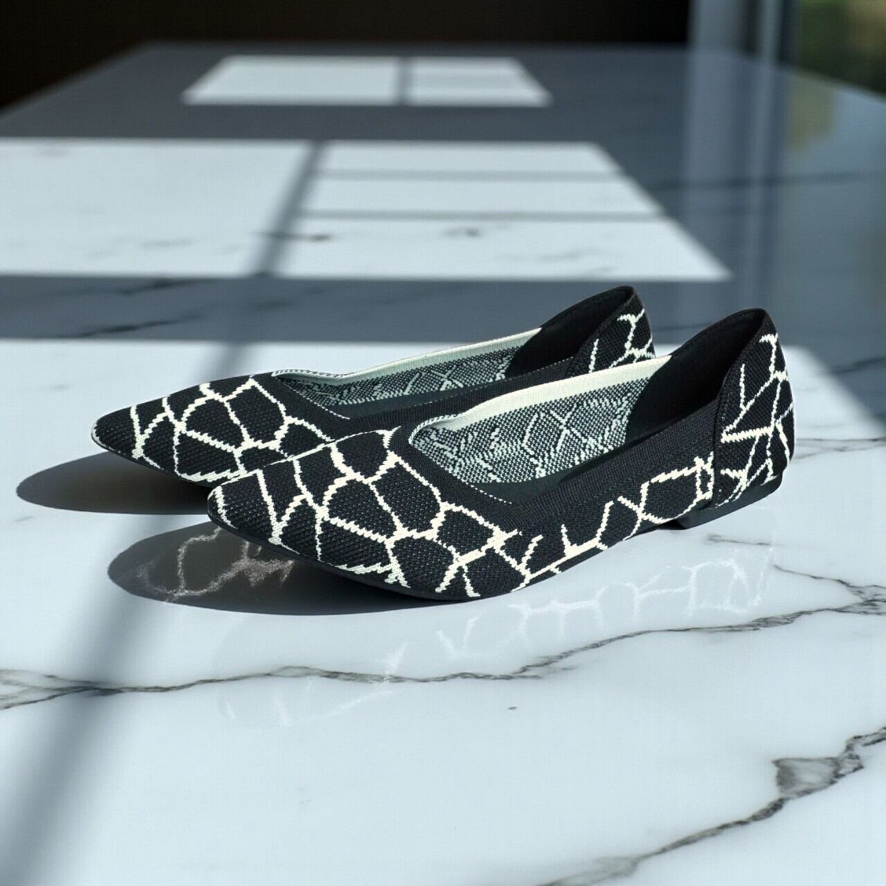 253-S-20 ニットジャガードシューズ ブラックジラフ Knit jacquard shoes Black giraffe