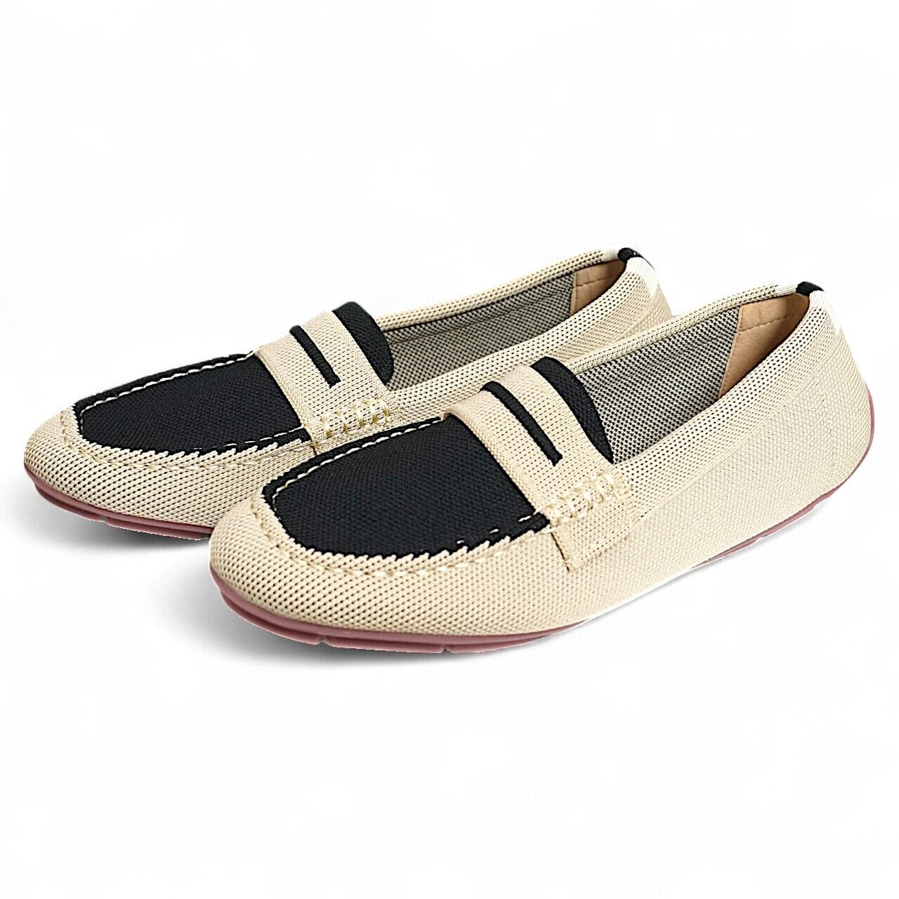 253-S-21 ニットローファー ベージュ×ブラック Knit loafers Beige x black