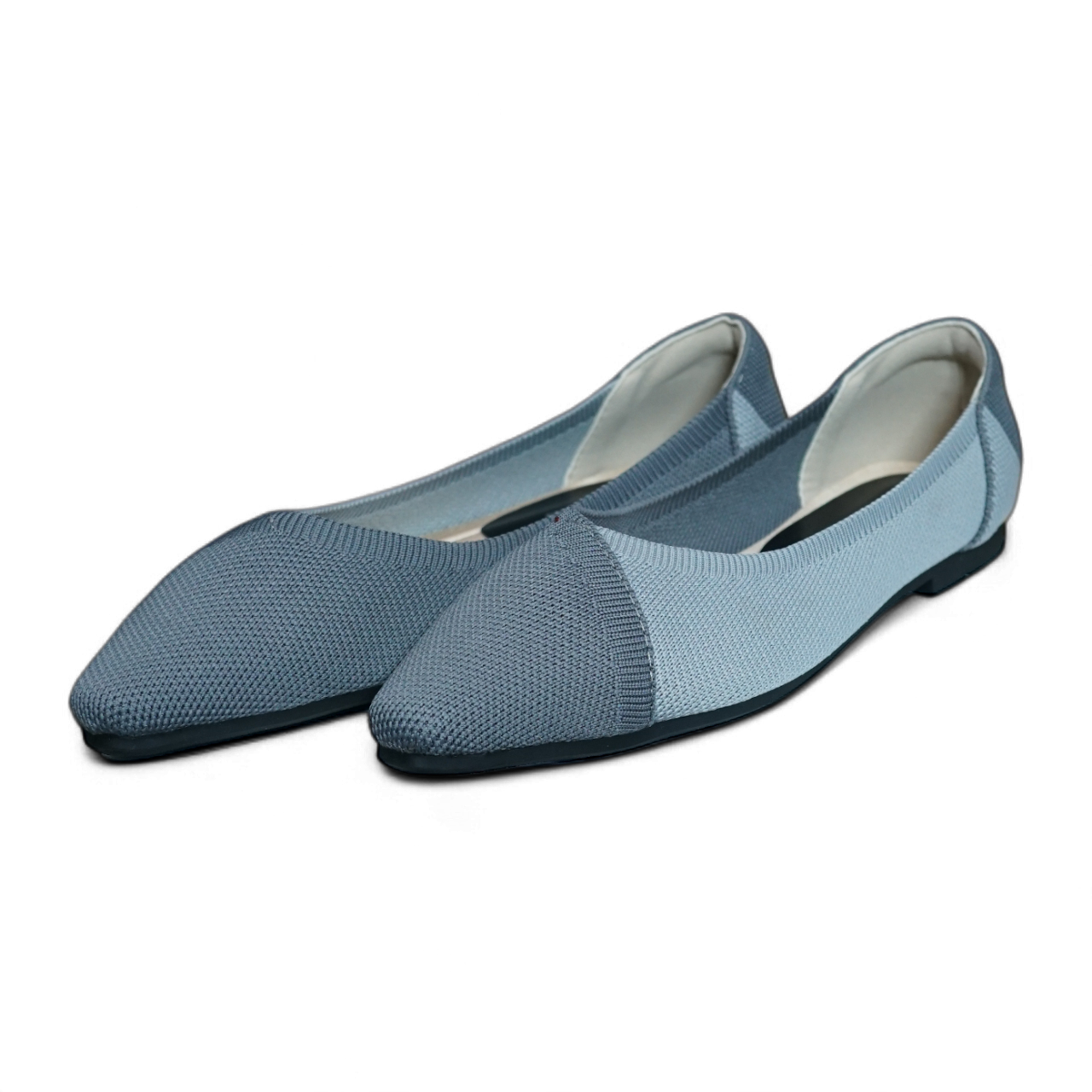 【知的な足元】くすみブルーのバイカラー。痛くないニットパンプス フラットシューズ 青